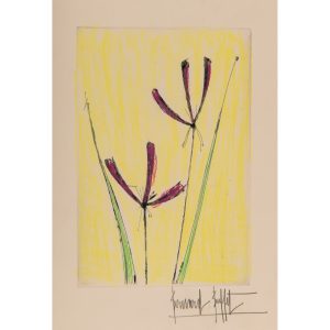 commerce. Un des 25 exemplaires sur vélin d’Arches (après 10 de tête sur Japon), accompagnés d’une suite sur Rives et de 2 gravures originales en couleurs volantes, signées par Buffet : celui-ci le n° 1. Dos de l’étui passé.