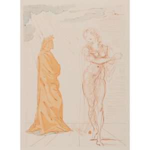 Édition fameuse, illustrée de 100 planches en couleurs de Dalí gravées sur bois par Raymond Jacquet : L’Enfer 1, 17 ; L’Enfer 2, 17 ; Le Paradis 1, 16 ; Le Paradis 2, 17 ; Le Purgatoire 1, 16 ; Le Purgatoire 2, 17.