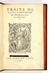 [DANEAU (Lambert)]. — Traité de l'estat honneste des Chrestiens en leur accoustrement. — Genève, Jean de Laon, 1580. — In-8, 191 pp. : veau fauve, triple filet doré, armoiries au centre, dos orné, chiffre couronné répété, tranches...