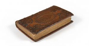 252, la pagination sautant sans manque de 215 à 218) et 1 f.n.ch. : veau fauve estampé, plats encadrés de motifs en écoinçon et de deux roulettes, médaillon ovale au centre figurant la Vierge Marie, traces d'attaches, dos orné de filets et d'un fer répété dans les caissons, tranches dorées et ciselées (reliure de l'époque).