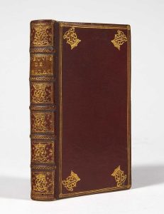 couronné répété aux angles, dos orné du même chiffre, pièce de titre fauve, roulette intérieure, tranches dorées sur marbrure (reliure de l'époque).