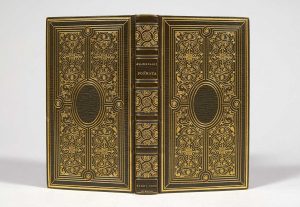panneau compartimenté en quatre parties s'ordonnant autour d'un médaillon ovale laissé en réserve, dos orné, roulette intérieure, tranches dorées (Purgold).