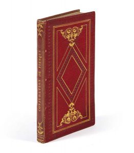 tête et pied par des rinceaux stylisés, le losange central souligné d'une roulette perlée à froid, dos lisse orné portant le titre doré en long dans un cartouche, triple filet intérieur se croisant aux angles, gardes de vélin, tranches dorées (reliure vers 1830).