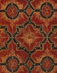 Parmi les petits fers employés, outre des besants d'or et des motifs à l'éventail, on relève de petites fleurs de lis disposées sur un rang pour délimiter les bordures peintes des compartiments, ainsi que quatre fers recourbés en forme de rinceaux et en partie filigranés, juxtaposés l'un contre l'autre et placés dans les médaillons ovales sur les plats.
