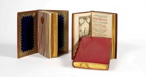 200 pp. et 24 ff.n.ch. ; 2 ff.n.ch. (frontispice et titre), pp. 201-624 ; 2 ff.n.ch. (frontispice et titre), 2 ff.n.ch., 434 pp., et 3 ff. blancs reliés entre les pp. 180-181, 258-259 et 352-353 : maroquin rouge, janséniste, dentelle intérieure, doublure de maroquin bleu, doubles gardes, tranches dorées, non rogné (Cuzin - Marius Michel doreur).