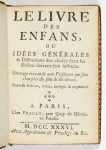 LIVRE DES ENFANS (Le), ou Idées générales & Définitions des choses dont les Enfans doivent être instruits. — Paris, Prault, 1736. — In-12, 8 ff.n.ch., 160 pp. et 7 ff.n.ch. : maroquin rouge, triple filet doré, fleurette aux angles, dos...