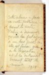 Une note de sa main à l'encre rouge, glissée dans le volume, confirme : “Cette reliure n'est pas authentique, la peau seule est ancienne et la décoration très remarquablement exécutée et imitée des œuvres de Padeloup est faite par un relieur du nom de François.”