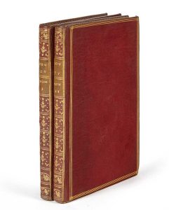 in-8, de 4 ff.n.ch. et 108 pp. ; 2 ff.n.ch. et 106 pp., 12 pp. de musique gravée : maroquin rouge, triple filet doré, dos lisse orné, pièces de titre et de tomaison olive, roulette intérieure, tranches dorées (reliure de l'époque).