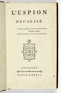 [GUÉMADEUC (Baudoin de)]. — L'Espion dévalisé. — Londres [Neuchâtel, Jonas Fauche], 1782. — In-8, VII pp., 1 p.n.ch. (errata) et 240 pp. : basane fauve marbrée, triple filet doré, dos lisse orné, pièce de titre rouge, tranches marbrées...