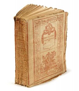 La couverture recouvre un volume de la Bibliothèque des meilleurs Poëtes italiens, imprimé à Orléans par L. P. Couret de Villeneuve en 1785, lequel avait lancé cette collection brochée dont la couverture fut confiée à un imagier de la ville.