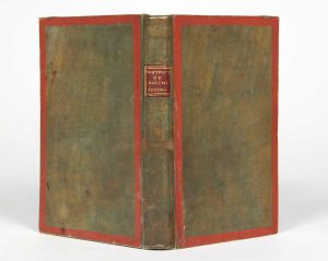 PLAISANT EXEMPLAIRE DANS UNE CURIEUSE RELIURE DE L’ÉPOQUE EN VÉLIN VERT, LES FILETS DORÉS “ARISTOCRATIQUES” REMPLACÉS ICI PAR UN TRAIT DE PEINTURE ROUGE.