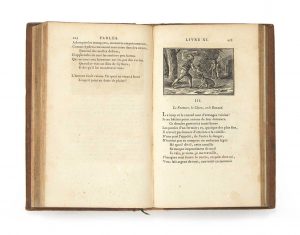 LA FONTAINE (Jean de). — Fables. — Paris, Antoine-Augustin Renouard [de l'Imprimerie de P. Didot l'aîné], 1811. — 2 volumes in-12, de 2 ff.n.ch., CVI et 245 pp. ; 2 ff.n.ch. et 382 pp. : basane racinée, chaînette et dent de rat en...
