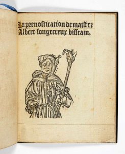 PRENOSTICATION (La) de maistre Albert songecreux bisscain. — Sans lieu ni date [Paris, Martin, 1861]. — In-4 gothique, 4 ff.n.ch. : maroquin vert foncé, janséniste, dos à nerfs portant le titre doré, tranches dorées (Trautz-Bauzonnet).