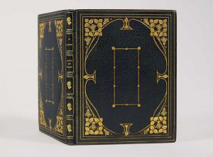 dorés et de tiges fleuries stylisées, les boutons mosaïqués en vert, rectangle au centre, dos orné, rose dorée et mosaïquée dans les caissons, encadrement intérieur avec fer végétal aux angles, tête dorée, non rogné (Riviere & Son).