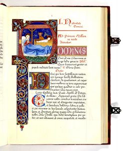— p. 1 : grande initiale D avec Nativité (110 x 80 mm environ).