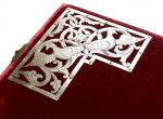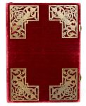 ■ SPECTACULAIRE MANUSCRIT ENLUMINÉ SUR PARCHEMIN DANS LE GOÛT DES MANUSCRITS DU MOYEN ÂGE, DANS UNE RELIURE DE VELOURS CRAMOISI ORNÉE DE GRANDS ÉCOINÇONS DE MÉTAL CISELÉ ET AJOURÉ FIGURANT DES AIGLES DANS UN DÉCOR DE RINCEAUX.
