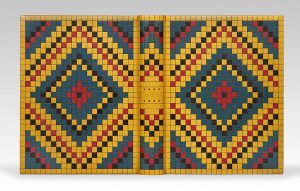 BENOIT (Pierre). — L’Atlantide. — Peintures et dessins du Hoggar de Paul-Élie Dubois. — Lyon, Cercle lyonnais du Livre, 1934. — Petit in-folio, maroquin richement mosaïqué sous forme de damier en quatre tons, bordure intérieure...