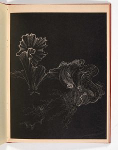 de pastilles de veau rouge titrées, doublure de daim gris, couverture, non rogné, chemise demi-veau à bande et étui (J. de Gonet 1982).