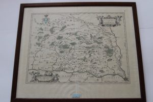La Souveraineté de Dombes. Vers 1640. Carte non coloriée, 49 x 59 cm, encadrée. Édition française. Texte au verso lisible par une fenêtre du cadre.