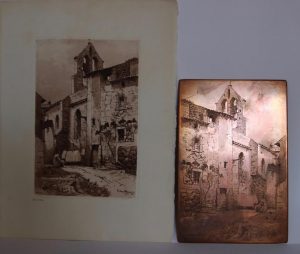2 eaux-fortes et 3 cuivres originaux. Éditions Didier-Richard, 1934-1941. La Tarentaise : Au Petit-Saint-Bernard, eau-forte tirée de l'ouvrage Au seuil des Alpes de Savoie (1936), avec le cuivre original contrecollé sur panneau (quelques rayures d'usage)