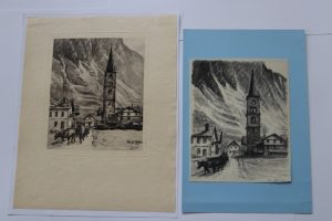 On joint, du même : Val d'Isère 1936. Didier et Richard, Grenoble 1936. Eau-forte sur japon. 28 x 35 cm. Le tirage sur japon est de 40 exemplaires. Extrait de l'album Au seuil des Alpes de Savoie. Bel état.