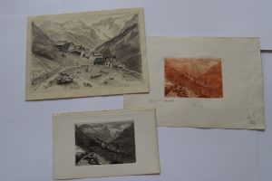 Le Rif du Sap. Didier et Richard, Grenoble 1930. Eau-forte, tirée en sanguine sur Montval. 20 x 30 cm. Le tirage en sanguine est de 36 exemplaires. Extrait de l'ouvrage En altitude.
