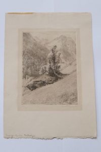 Paysage alpestre. 1933. Eau-forte. 33 x 23,5 cm. Tirage de 75 épreuves (n° 55). Numérotée et signée par l'artiste au crayon en marge.
