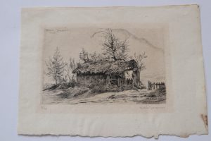 Vieux four en ruine à Chamonix. 1946. Eau-forte. 16,5 x 24 cm. Tirage de 75 épreuves (n° 6). Numérotée et signée au crayon par l'artiste en marge.
