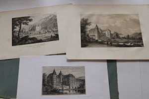 On joint : Vue du château de Vizille. Eau-forte contrecollée, 25 x 31,5 cm, non signée, sans date (XIXe siècle). Belle vue du château de Vizille.