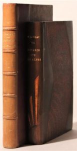 Tartarin sur les Alpes. Nouveaux exploits du héros tarasconnais. Calmann-Lévy, éditeur, Paris, 1885. 1 vol. in-8, demi-chagrin, dos à nerfs, couvertures conservées (dos insolé, cois légèrement émoussés). 334 pp. Illustré de 16 aquarelles en couleurs hors-texte et de nombreuses autres illustrations dans le texte par Aranda, de Beaumont, Montenard, de Myrbach et Rossi. Première édition, second tirage (le second tirage de l'édition originale se distingue du premier car il comporte la mention de la justification du tirage au verso du 3e ff. ; la gravure de la p. 330, à l'envers sur le premier tirage, est remise à l'endroit dans le second).