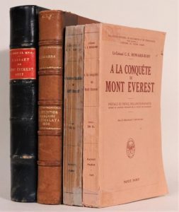 – On joint : HOWARD-BURY (Charles Kenneth). À la conquête du Mont Everest. Payot, Paris 1923. 1 vol. in-8, broché. Illustré de 32 planches hors-texte et d'une carte dépliante. Première édition française. Préface du Prince Roland Bonaparte. Récit de la première expédition britannique à l'Everest en 1921. La reconnaissance s'effectua par le Col Nord, point extrême atteint par cette expédition.