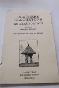 Clochers clochetons en Beaufortain. Imprimerie Borlet, Albertville, 1982. 1 vol. in-folio, en feuilles sous chemise illustrée de l'éditeur (accroc au dos et sur le bord des plats). Non paginé. Illustré de 8 planches hors-texte (dessins à la plume, numérotés et signés au crayon par l'auteur). Première édition, tirée à 410 exemplaires tous numérotés (N° 100). L'album est composé d'une introduction de l'Abbé Hudry et de 8 cahiers, chacun avec une présentation et une planche protégée par une serpente : I - Queige, II - Villard-sur-Doron, III - Hauteluce, IV - Beaufort, V - Les Curtillets, VI - Le Praz, VII - Arêches - VIII - Boudin. Une belle réalisation.