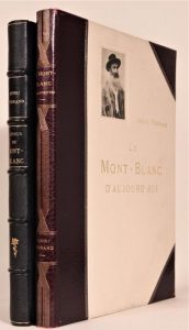 Le Mont-Blanc d'aujourd'hui. Jules Rey, éditeur, Grenoble, 1912. 1 vol. in-4, reliure demi-maroquin avec coins, plats en percaline avec photo incrustée, dos lisse richement orné (reliure de l'éditeur). 151 pp. Illustré de nombreuses phototypies. Première édition. Imprimé sur papier teinté. Un bel album sur le Mont-Blanc, avec des considérations sur l'histoire de sa conquête. Bibliographie. Bel ouvrage illustré façon 1900. Sans doute le plus recherché des Ferrand. (Perret 1634).