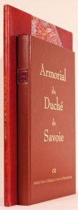 On joint : PAGANI (Teodoro). Armorial du duché de Savoie dressé pour le marquis Costa de Beauregard. Librairie La Licorne, Annecy 2000. 1 vol. in-4, reliure skivertex. XVI + 172 + 68 + VIII pp. Illustré de très nombreux blasons en couleurs. Première édition, tirée à 500 exemplaires. Celui-ci un des 200 exemplaires réservés aux souscripteurs (n° 15). Introduction de Paul Guichonnet. Cet armorial fut réalisé dans les deux dernières décennies du XVIIIe siècle par Teodoro Pagani, puis récupéré par son gendre Vittorio Lajolo qui lui donna son nom. Le Marquis Costa de Beauregard en fit exécuter une copie par son secrétaire, pour la partie savoyarde ; c'est cette copie qui est reproduite ici. Important armorial de Savoie, qui complète celui de Foras.