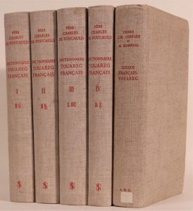 On joint : CORTADE (Jean-Marie). Lexique Français-Touareg. Dialecte de l'Ahaggar. Éditions Arts et métiers graphiques, Paris 1967. 1 vol. grand in-8, reliure toile d'édition. 511 pp. Première édition. Complément indispensable au dictionnaire de Ch. de Foucauld. Ensemble 5 vol.
