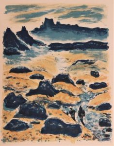 Garet el Djenoun. La montagne des génies et ses légendes. Société Shell, Alger, 1960. 1 vol. in-4, en feuilles sous chemise et étui de l'éditeur. Illustré de 11 dessins en noir et blanc et de 3 lithographies en couleurs à pleine page ou double page par Charles Brouty. Première édition, un des 75 exemplaires sur vélin d'Arches (n° 70). Un bel album illustré moderne sur ce spectaculaire sommet du Hoggar, gravi en 1935 par l'auteur.