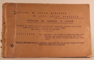 Itinéraires des ascensions du Dauphiné. I.- Refuges. La chaîne au Nord du Lautaret (groupe des Grandes Rousses, de l'Aiguille du Goléon et des Aiguilles d'Arves). II.- La chaîne principale (groupes du Râteau, de l'Aiguille du Plat, le la Meije, de la Grande Ruine et de la Montagne des Agneaux). III.- La chaîne principale (groupe du Séguret-Foran, du col de l'Eychauda, de la montagne de Combeynot, des Écrins, du Mont Pelvoux et des Bans). IV.- la chaîne principale : groupes du Sommet des Rouies, de la montagne du Clot Châtel, de la Tête de l'Etret, du Pic d'Olan, du Pic des Souffles, de l'Aiguille des Arias, du Bec du Canard, de la Tête de Lauranoure, et de la Roche de la Muzelle. V.- La chaîne au Sud du Sellar (groupes de a pointe de l'Aiglière, du Pic Félix Neff, du Pic Bonvoisin, du Pic de Parières et du Chaillol). Groupe de Haute Montagne du Club Alpin Français, 1924. 5 fascicules ronéotypés, in-8 oblong. 94 + 119 + 112 + 102 + 84 pp. Établi exclusivement à l'usage des membres du G. H. M. et ne pouvant être mis dans le commerce, d'après le Guide du Haut-Dauphiné de Coolidge, Duhamel et Perrin, complété et mis à jour au 1er octobre 1924 par Jeanne et Tom de Lépiney. Très rare topo-guide à l'usage des meilleurs alpinistes français de l'après-guerre. Défauts d'usage.