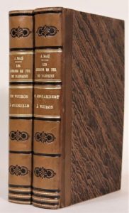 Les Chemins de fer du Dauphiné. Guide itinéraire. Première partie : De St-Rambert à Voiron. Deuxième partie : De Voiron à Grenoble. Maisonville et fils et Jourdan, Libraires-éditeurs, Grenoble, 1860. 2 vol. in-8, reliure demi-basane, dos à faux nerfs ornés, couvertures conservées (reliures postérieures). XV + 512 pp. et 508 pp. Première édition, de la Petite bibliothèque des chemins de fer du Dauphiné. Excellent guide descriptif et historique des localités traversées. Très bon état.