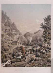 La Salette. Chez l'auteur, Paris et chez Mrs A. Merle & Cie, Grenoble, 1863. 1 vol. in-4, Pleine toile d'édition (reliure défraîchie). 23 pp. Illustré de 8 lithographies en couleurs hors-texte. Texte descriptif de l'Abbé de la Salette. Les vues dues à A. Maugendre sont en parfait état de fraîcheur.
