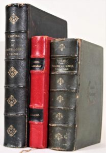 On joint : FOUREAU (F.). D'Alger au Congo par le Tchad. Masson & Cie, Paris 1902. 1 vol. fort in-8, reliure demi-chagrin, dos à nerfs, plats en percaline, fer doré (frottements, dorure du fer passée). 11 + 829 pp. Illustré d'un portrait frontispice et de 170 figures dans le texte (la carte est manquante). Première édition. Histoire de la mission Foureau-Lamy qui traverse le Sahara de Ouargla à Zinder d'octobre 1898 à novembre 1899, puis poursuit jusqu'au Congo de décembre 1899 à juillet 1900. Ensemble 3 ouvrages illustrés sur l'exploration du Sahara.