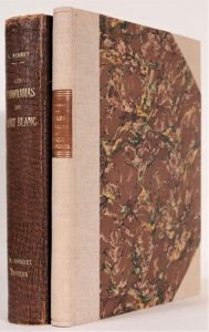 Les Panoramas du Mont-Blanc. M. Dardel, éditeur, Chambéry, 1929. 1 vol. in-4, cartonnage de l'éditeur. Non paginé. Illustré de 210 photos de l'auteur en sépia dans le texte. 1ère et seule édition. Les notices qui accompagnent chaque photographie décrivent la morphologie du massif et relate l'historique des voies d'ascension. Ex-libris Jacques Perret et Noël Hermet.