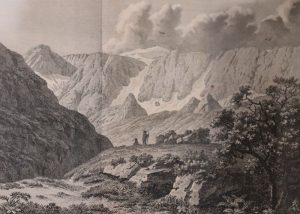 Voyages au Mont-Perdu et dans la partie adjacente des Hautes-Pyrénées. Chez Belin, Libraire, Paris, 1801. 1 vol. in-8, reliure plein veau raciné, dos lisse orné, encadrement doré sur les plats (mors fragiles, frottements). IV + 392 pp. Illustré d'un frontispice dépliant gravé à l'eau-forte (Vallée d'Estaubé) et de 5 planches dépliantes dont une carte.