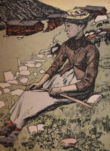 Le Village dans la montagne. Payot & Cie, éditeurs, Lausanne, 1908. 1 vol. grand in-4, cartonnage illustré de l'éditeur (cartonnage un peu défraîchi mais solide). 260 pp. Illustré de 58 dessins à pleines pages dont certaines en couleurs de vignettes d'Edmond Bille. Édition originale tirée à 1200 exemplaires de ce célèbre roman de Ramuz, remarquablement illustré. Recherché. Extrémités des feuilles jaunies comme habituellement, reste un bon exemplaire.