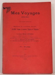 Mes voyages (1856 - 1861). Imprimerie Vignancour, H. Maurin, Imprimeur, Pau, 1906. 1 vol. broché, 69 pp. Extraits de 16000 lieues à travers l'Asie et l'Océanie. Rare plaquette.