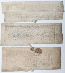 1360. SEINE ET OISE, Arrondissement de Versailles: LA BOULIE, Chevreuse, Chateaufort. 4 pièces sur Parchemins 1360-1361, in-folio oblong.