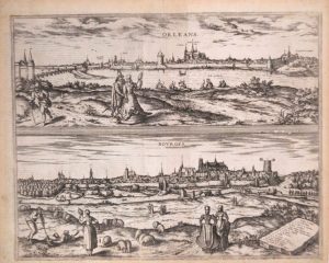 ORLÉANS . BOURGES. Gravure de 1575, représentant la Ville d'ORLÉANS (Loiret) et celle de BOURGES (Cher). G. Braun & F. Hockenberg, Cologne 1575.