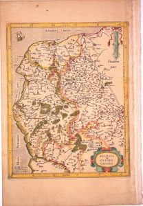 Carte XVIe s.: BOULONNAIS ET COMTÉ DE GUINES. «Bolonia & guines comitatus.» Par Gerardus Mercator (1512-1594) «Per Gerardum Mercatorem cum provilegio.» - (Boulogne sur mer (sic Boulongne), Hardelot, Calais (sic Cales), St Omer (sic St Omar.), Carte fin XVIe s. (43 x 29 cm) État B.