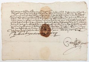 CARPENTRAS (Vaucluse) 1609. Ordre du vicaire et official général de CARPENTRAS (1609), 10 Septembre 1609, mandant à Pierre de la Sono de faire faire dans les trois jours par Ponce Favri, notaire de Carpentras, le double des lettres de collation du Prieuré de «Flessani» faite le 6 Septembre, en faveur de Nicolas Delpsini, selon les notes prises par Favri où est inséré la collation, et ce, sous peine de 25 livres d'amende. 1 feuille (25 x 17). Texte en latin.