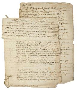 SOMME. Liasse de 7 pièces manuscrites concernant une affaire de justice entre des Laboureurs de NESLE (80) et l'Intendant de SOISSONS de 1647 à 1662 au sujet des baux de la Terre d'HOMBLEUX (80) et à la redevance de 24 setiers de blé, mesure de PÉRONNE.
