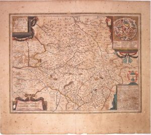 Carte XVIIe s.: Région de LIMOGES. «Totia LEMOVIVI et Confinium provincaru quantum ad diœcesin Lemovicensem spectant....» Avec en cartouche le plan de la ville de LIMOGES (sic Lymoges) - Amsterdam chez Johannes Jansson. Petit manque hors texte. (50 x 57 cm) État B.